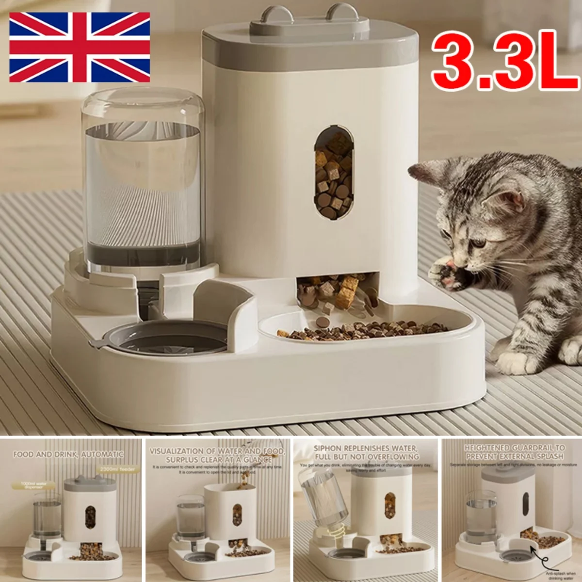 Cat Feeder and Gravity Drinker, 3.3L 2-in-1 Automatic Pet Drinker Detachable Set Pet Food Storage Suitable for Small Dogs and Cats