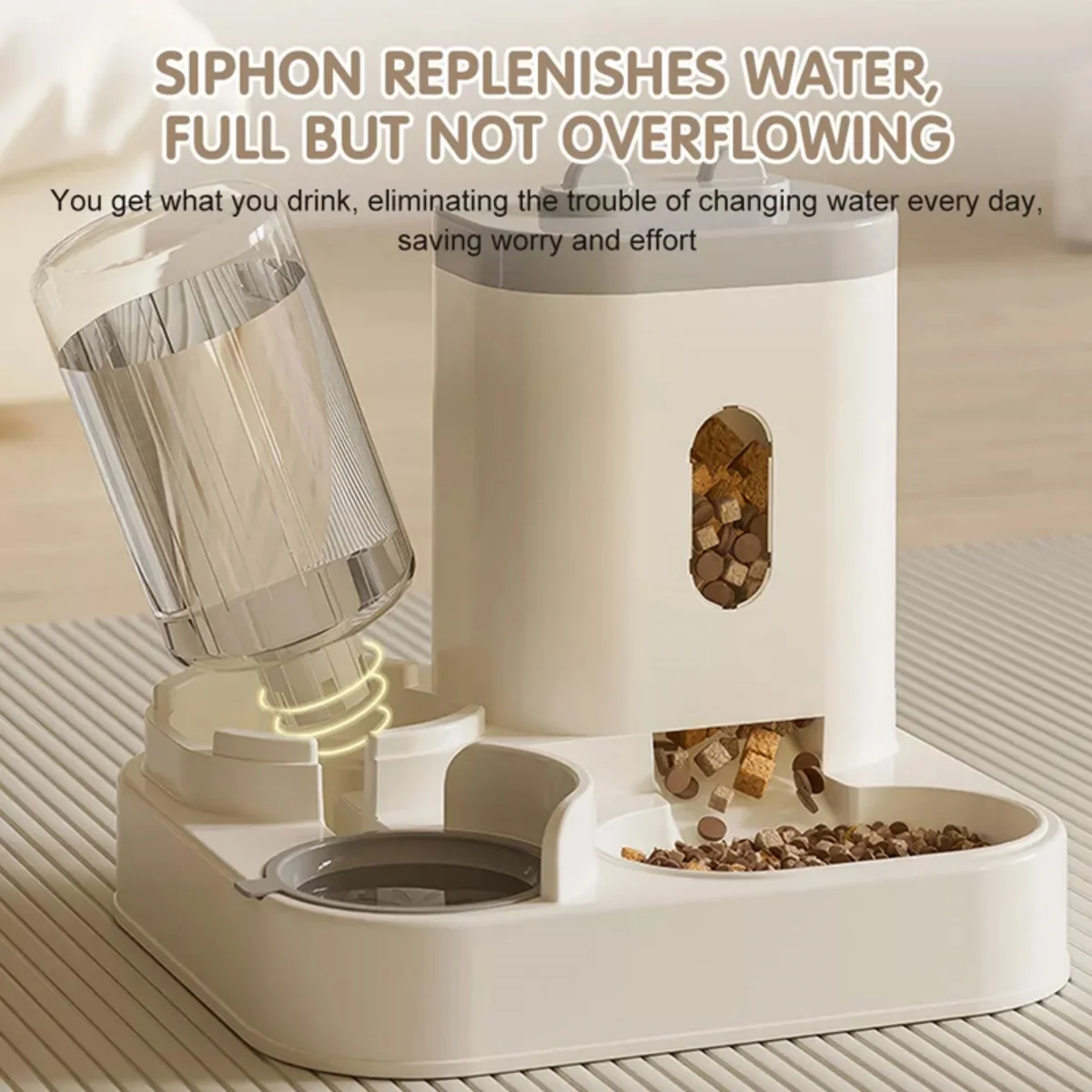 5. Easy to clean: The two-in-one automatic water dispenser set has a split design, making it very easy to add pet dry food and water and easy to disassemble and clean. It is recommended to use room temperature water to clean once a week to avoid deformation caused by hot water.