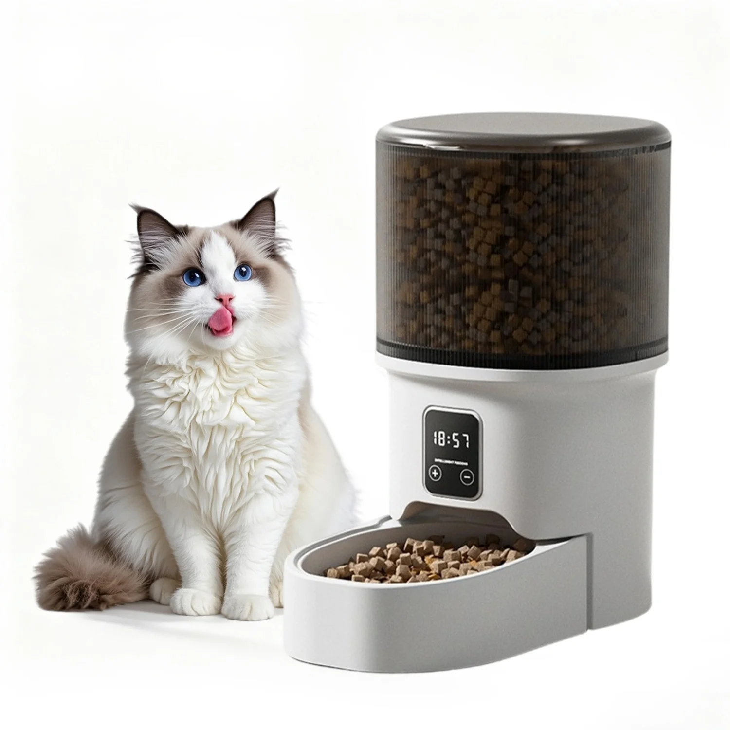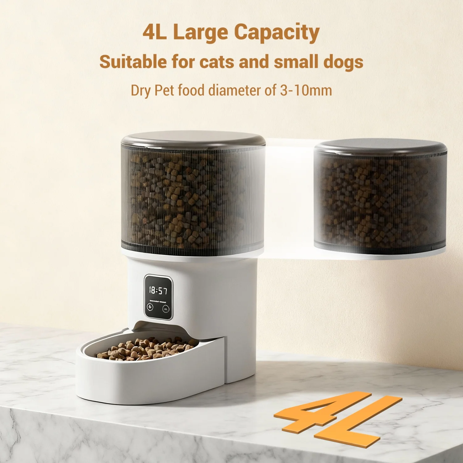 【Never Miss a Meal Again – 4L Large Capacity】 This automatic cat feeder holds up to 4 litres of dry food, making it perfect for cats and small to medium dogs. Whether you're working late or away for the weekend, your pet will always be fed on time.